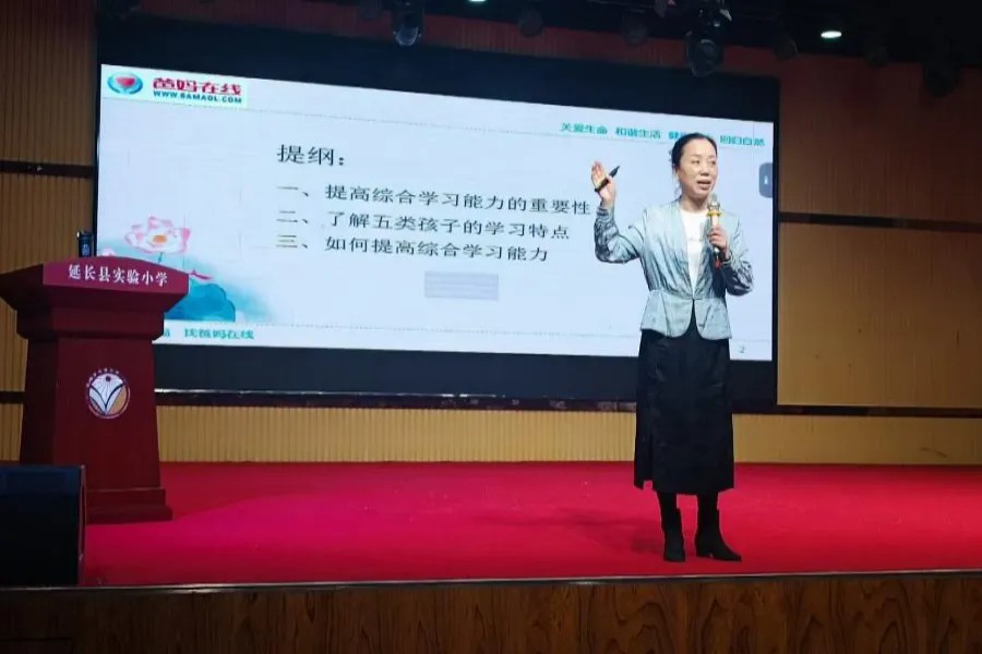 11月14日下午2:30至4:00,延安市爸媽在線中心的侯小燕老師受邀來到延長縣實驗小學為六年級家長們講了一堂“如何提高綜合學習能力”的精彩課程。