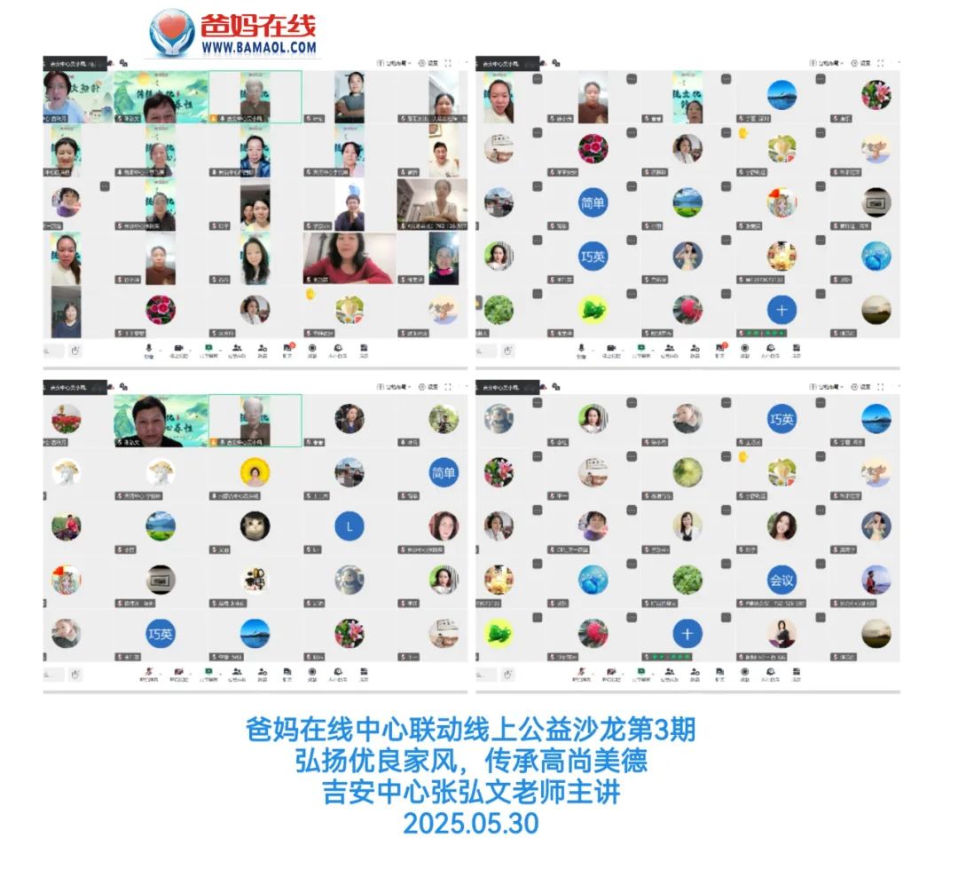5月30日晚7點30分,由爸媽在線江西吉安中心發起,張弘文老師傾情主講的“弘揚優良家風,傳承高尚美德——看三蘇家風家教”線上公益沙龍活動成功舉辦。此次活動由內蒙等八個爸媽在線中心協同組織,四十余位學員齊聚云端,共同開啟了一場關于千年家風的智慧之旅。